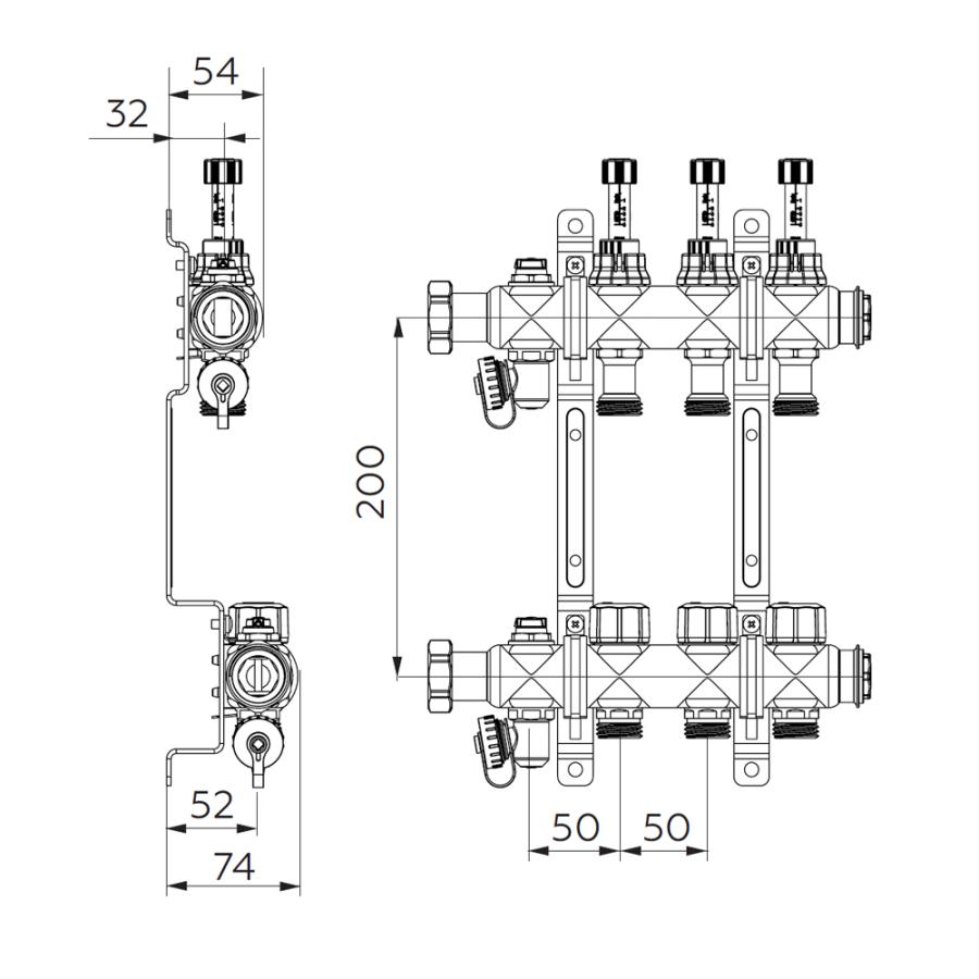 ELSEN Коллекторная группа с вентилями и ротаметрами нержавеющая сталь 2 контура EMi03.02