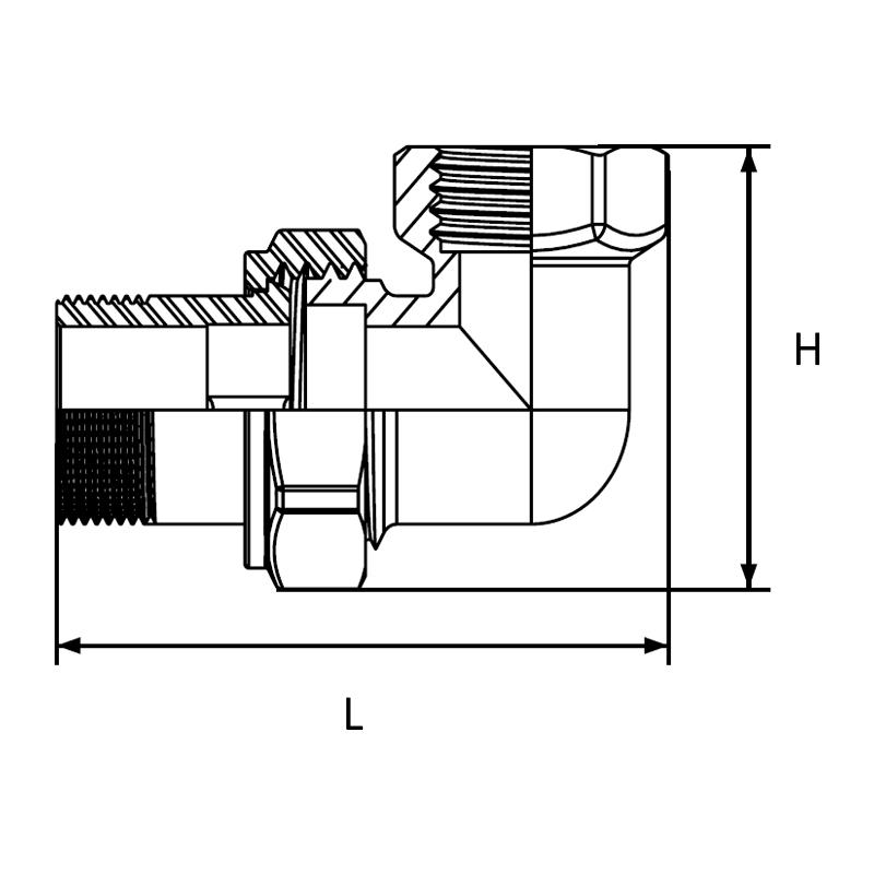 ELSEN Сгон американка угловой НВ 1/2"-1/2" латунь с плоским уплотнением EBF27.12